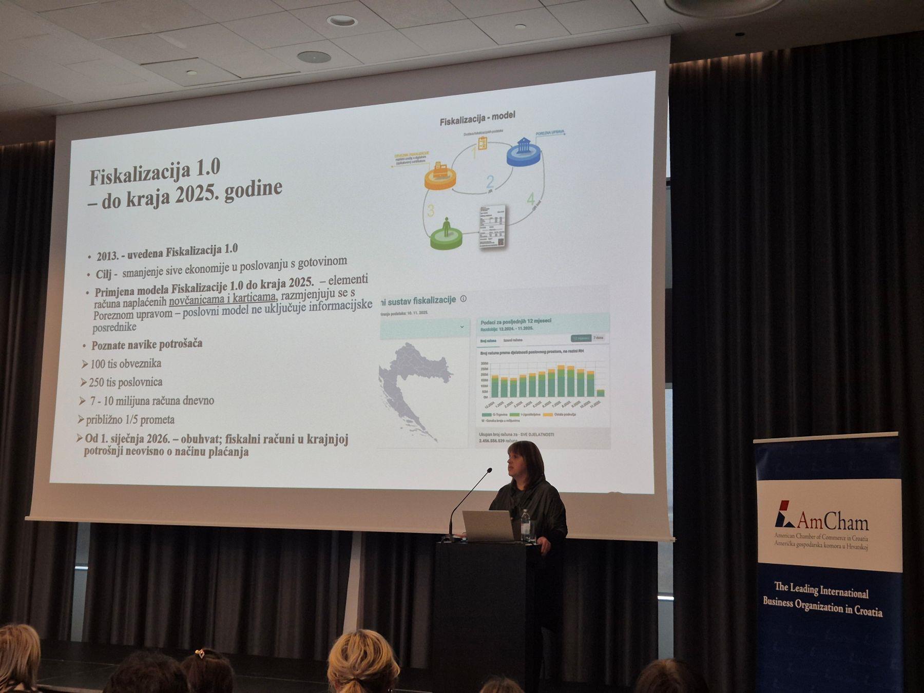 Američka gospodarska komora u Hrvatskoj je organizirala poslovni doručak u suradnji s Poreznom upravom posvećen novostima koje donosi sustav fiskalizacije 2.0. Na događanju su se predstavnici poslovne zajednice detaljno upoznali s nadolazećim zakonodavnim promjenama i praktičnim implikacijama koje će stupiti na snagu 1. siječnja 2026. godine.