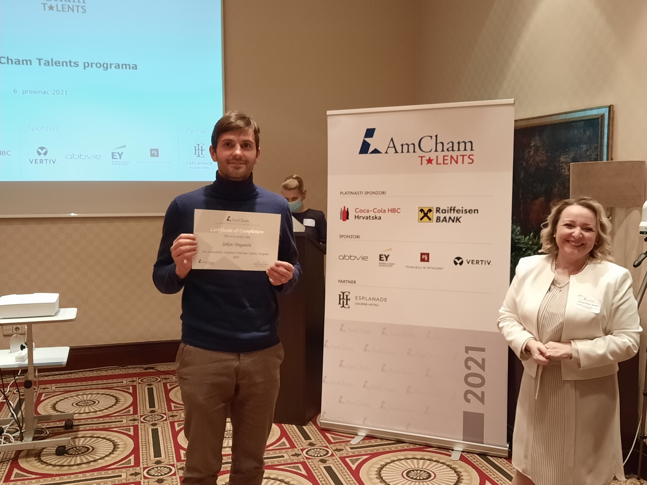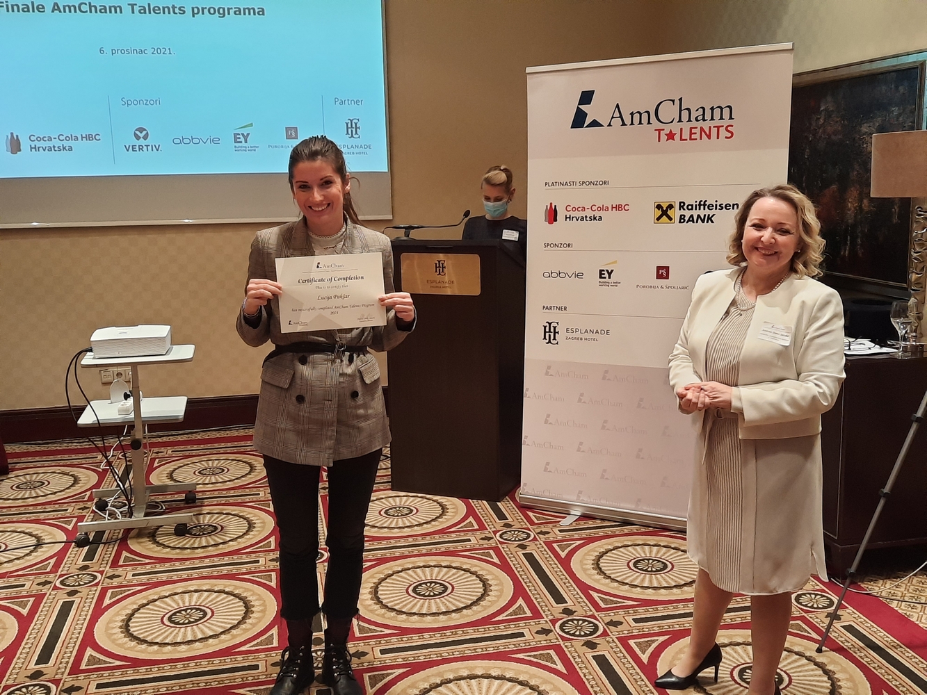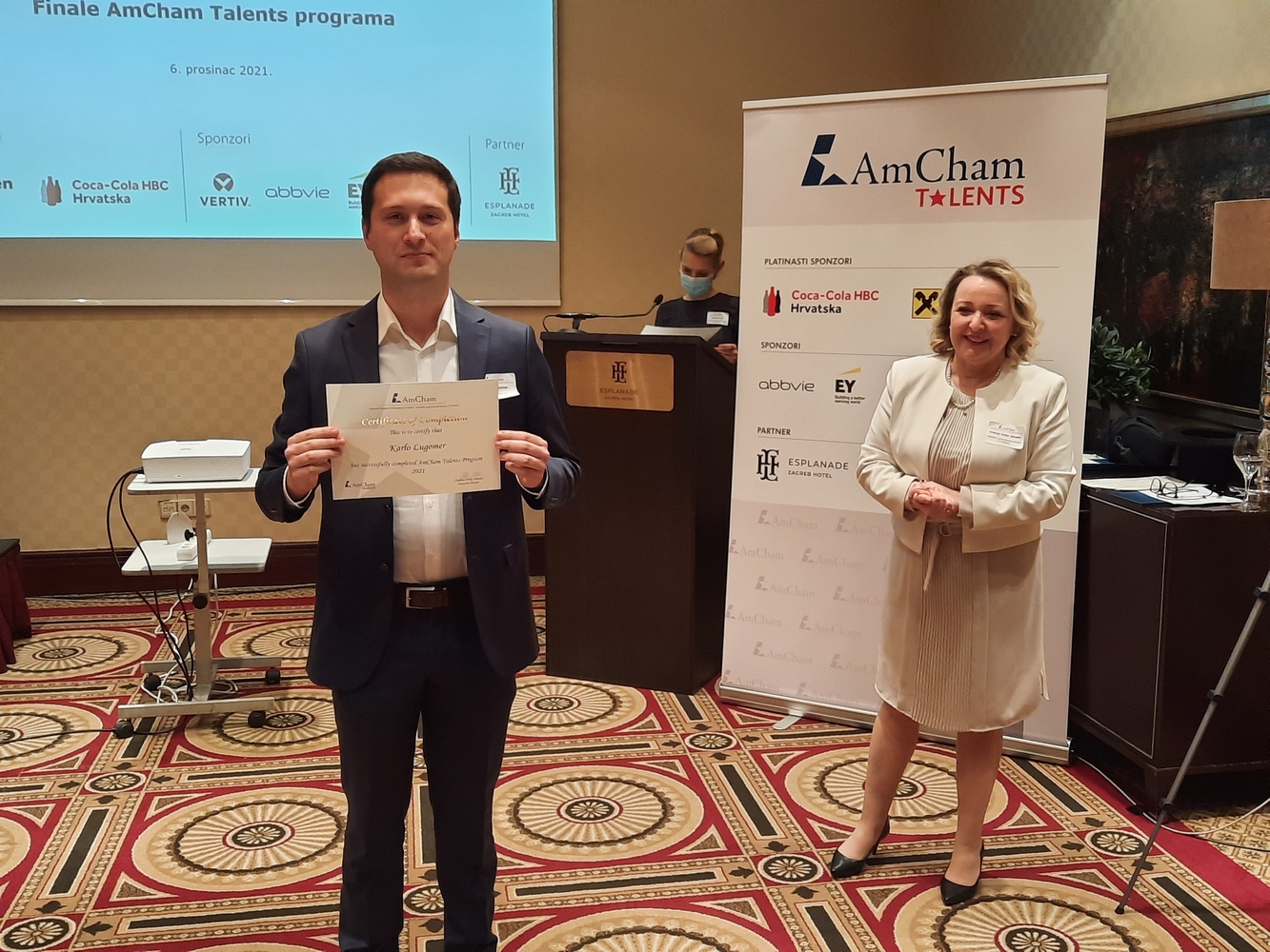 AmCham would like to thank all the sponsors and the Evaluation Committee members: Ms. Jasminka Rojko, Raiffeisenbank, Ms. Bojana Mucić, Coca-Cola HBC, Mr. Igor Grdić, Vertiv, Ms. Ivana Krajinović, EY, Ms. Dunja Maronić Filaković, AbbVie, Mr. Marko Porobija, Managing Partner, Law Firm Porobija & Špoljarić, members of AmCham Board of Governors who joined this year's program as mentors and the Evaluation Committee members: Mr. Bojan Poljičak, Adcubum, Mr. John Mathias Gašparac, PwC Croatia as well as partner of the program Esplanade Zagreb Hotel.