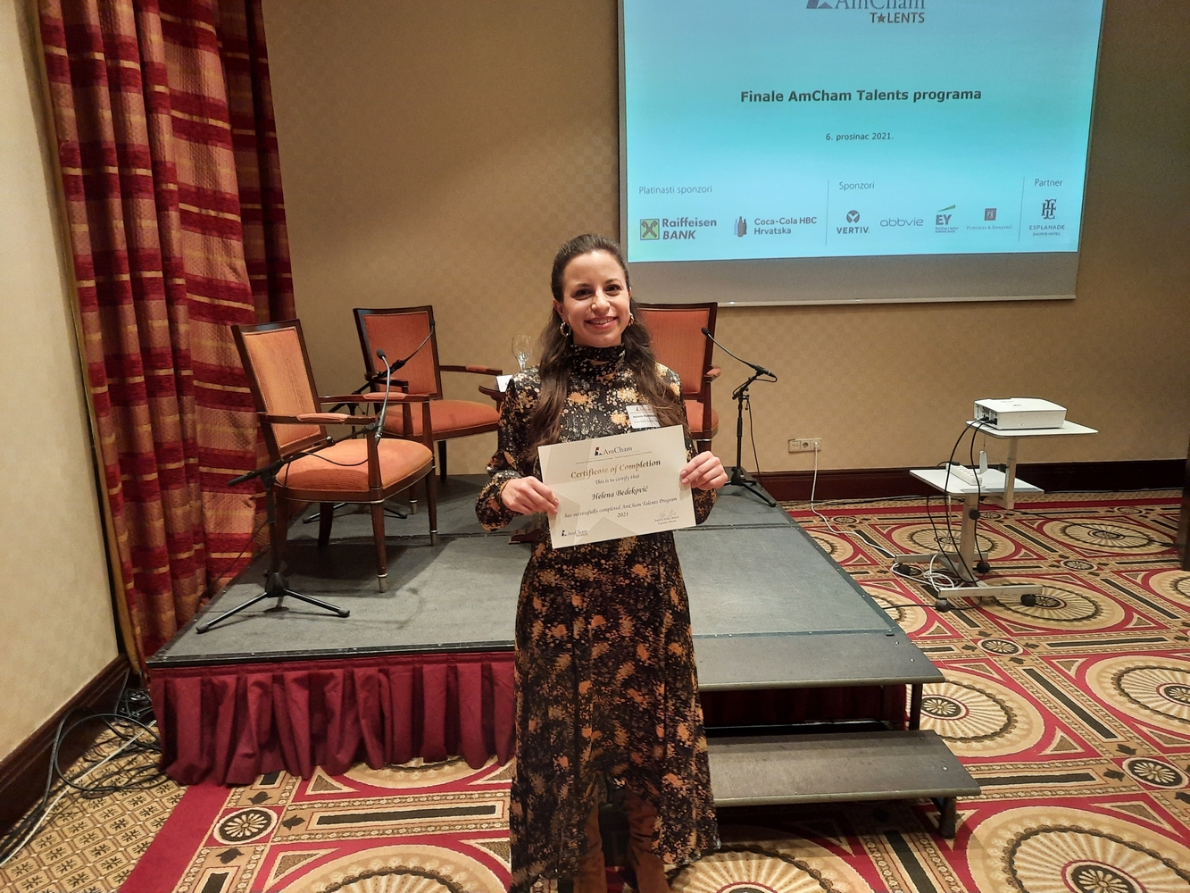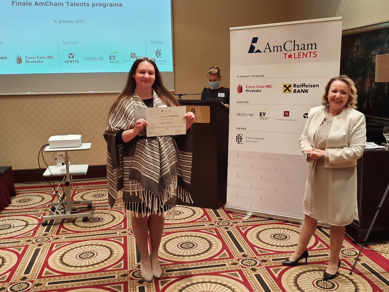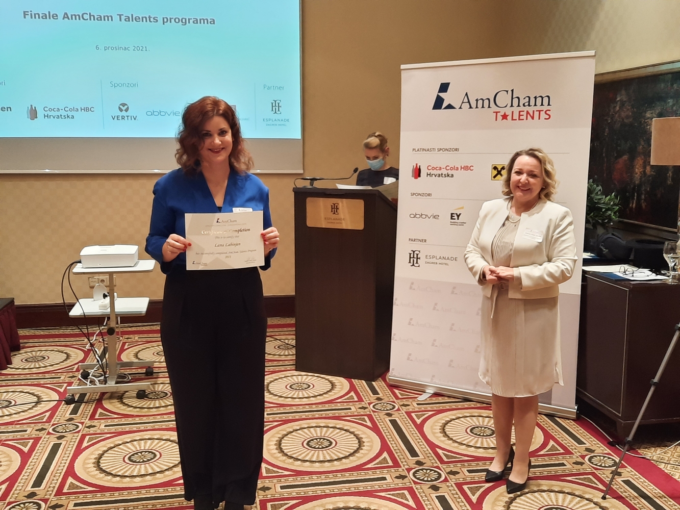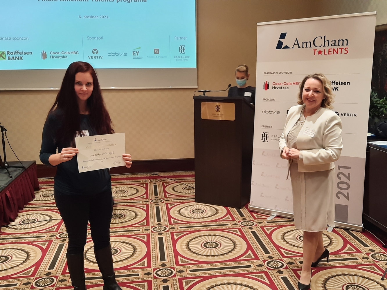 AmCham would like to thank all the sponsors and the Evaluation Committee members: Ms. Jasminka Rojko, Raiffeisenbank, Ms. Bojana Mucić, Coca-Cola HBC, Mr. Igor Grdić, Vertiv, Ms. Ivana Krajinović, EY, Ms. Dunja Maronić Filaković, AbbVie, Mr. Marko Porobija, Managing Partner, Law Firm Porobija & Špoljarić, members of AmCham Board of Governors who joined this year's program as mentors and the Evaluation Committee members: Mr. Bojan Poljičak, Adcubum, Mr. John Mathias Gašparac, PwC Croatia as well as partner of the program Esplanade Zagreb Hotel.