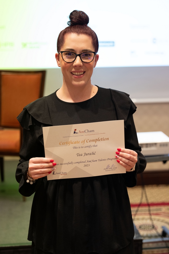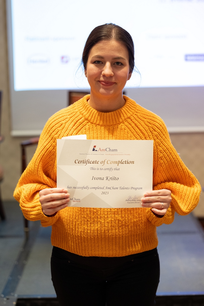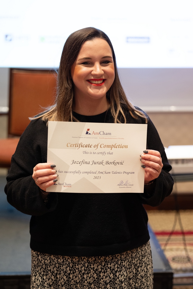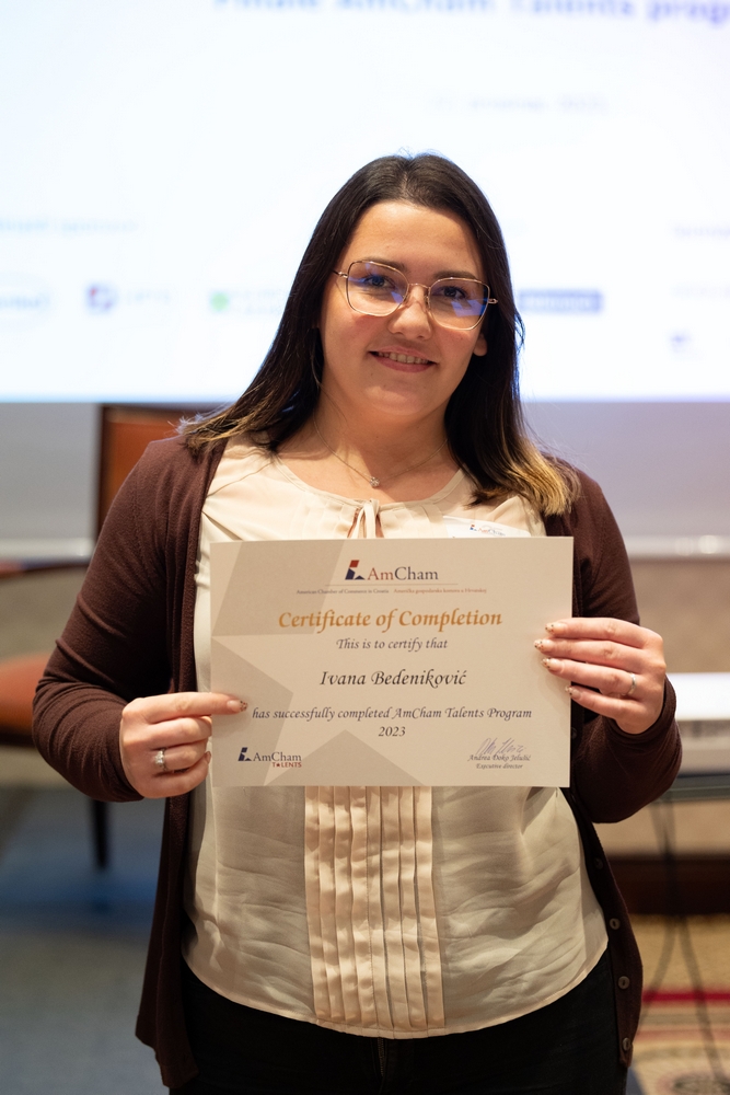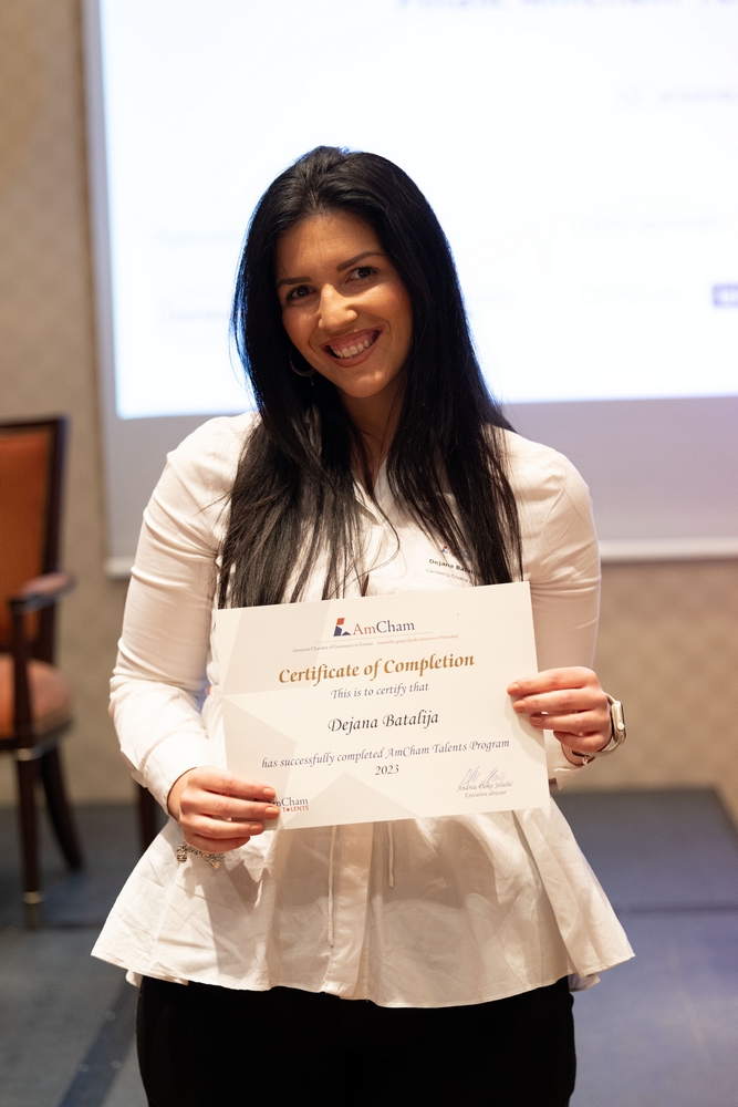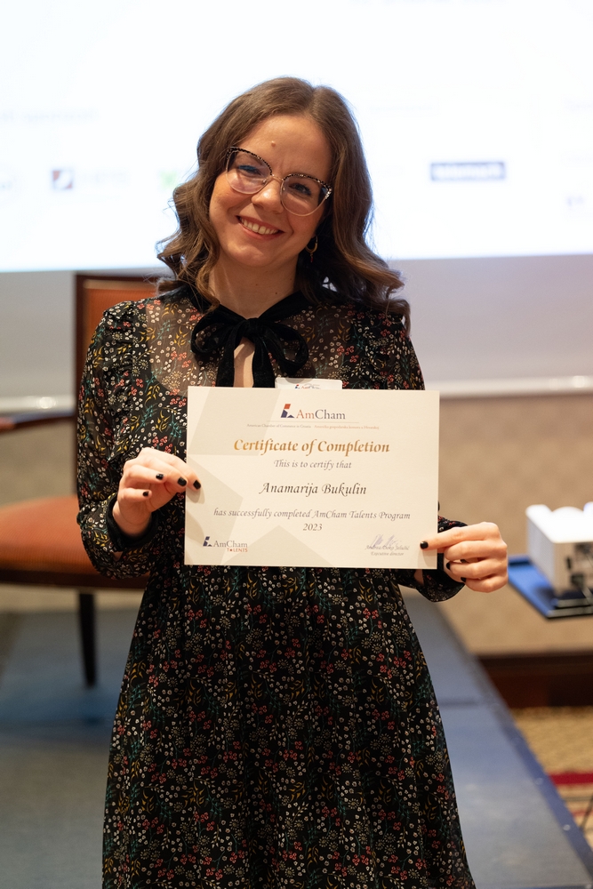 On December 12, AmCham Talents 2023 program had its final event. This year 156 young talents participated in the program and competition was fierce once again and the contest for the Talent of the Year title was close till the very end. After interesting presentations and panel questions Nino Kumic, Hrvatski Telekom took this year’s title of AmCham Talent of the Year. Maja Cvijanović Octenjak, Nexi Croatia came in second and Anamarija Bukulin, Raiffeisenbank Hrvatska took third place.