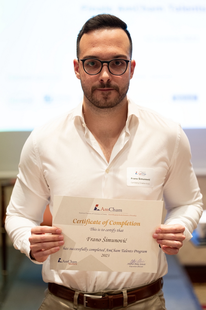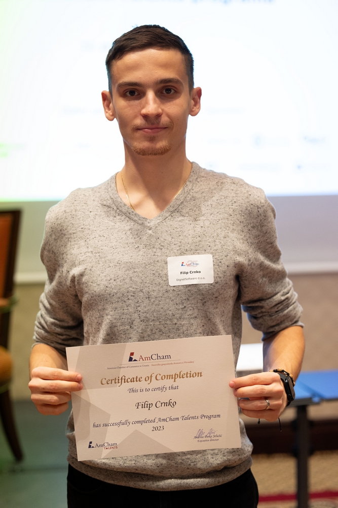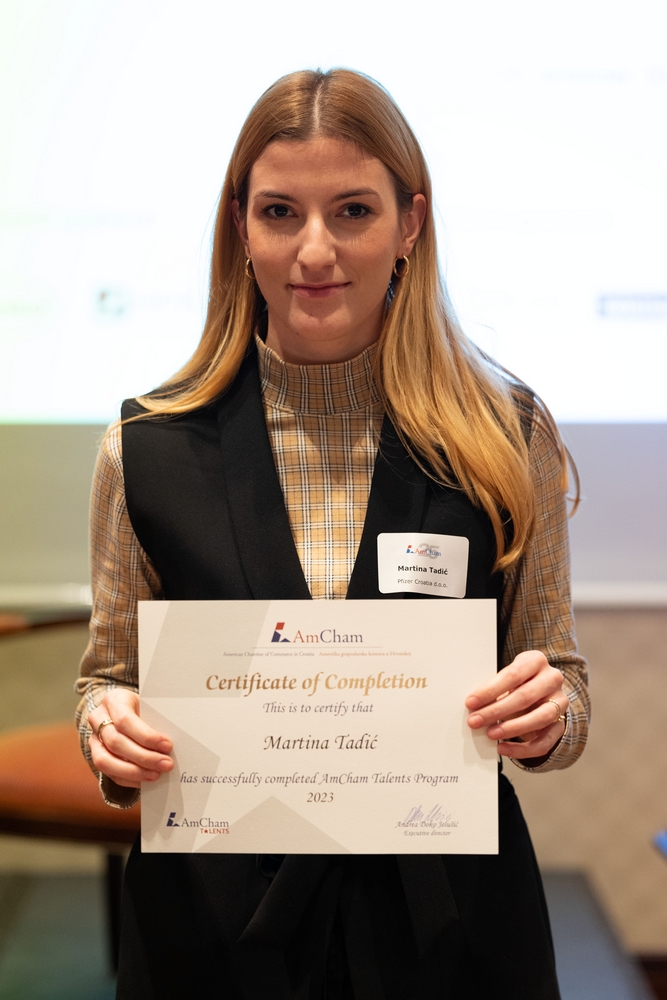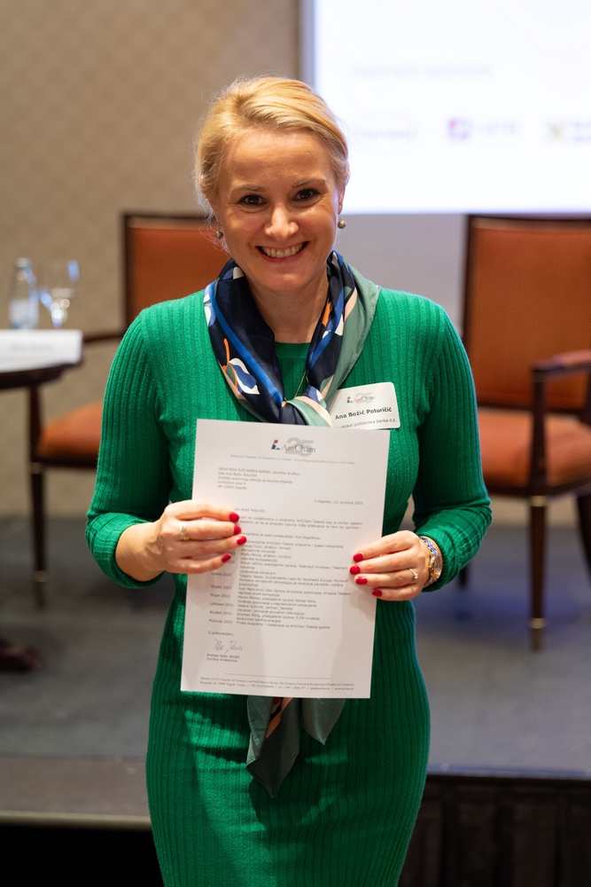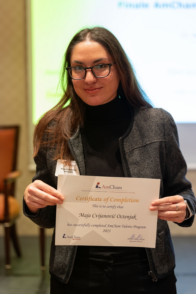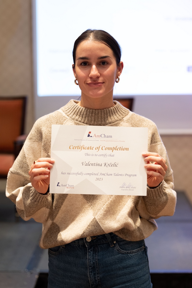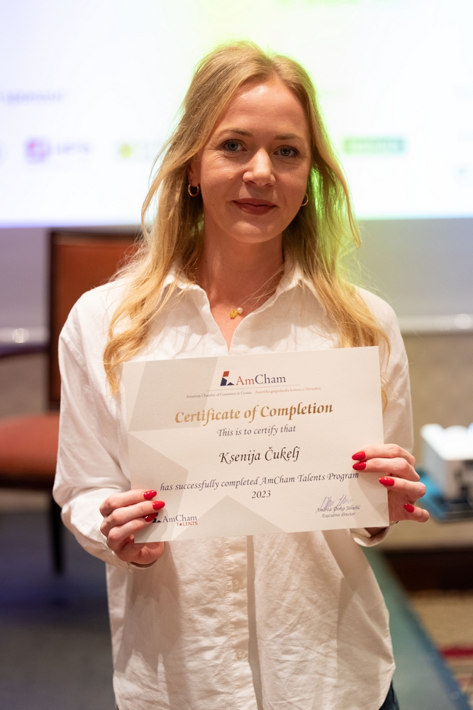 On December 12, AmCham Talents 2023 program had its final event. This year 156 young talents participated in the program and competition was fierce once again and the contest for the Talent of the Year title was close till the very end. After interesting presentations and panel questions Nino Kumic, Hrvatski Telekom took this year’s title of AmCham Talent of the Year. Maja Cvijanović Octenjak, Nexi Croatia came in second and Anamarija Bukulin, Raiffeisenbank Hrvatska took third place.