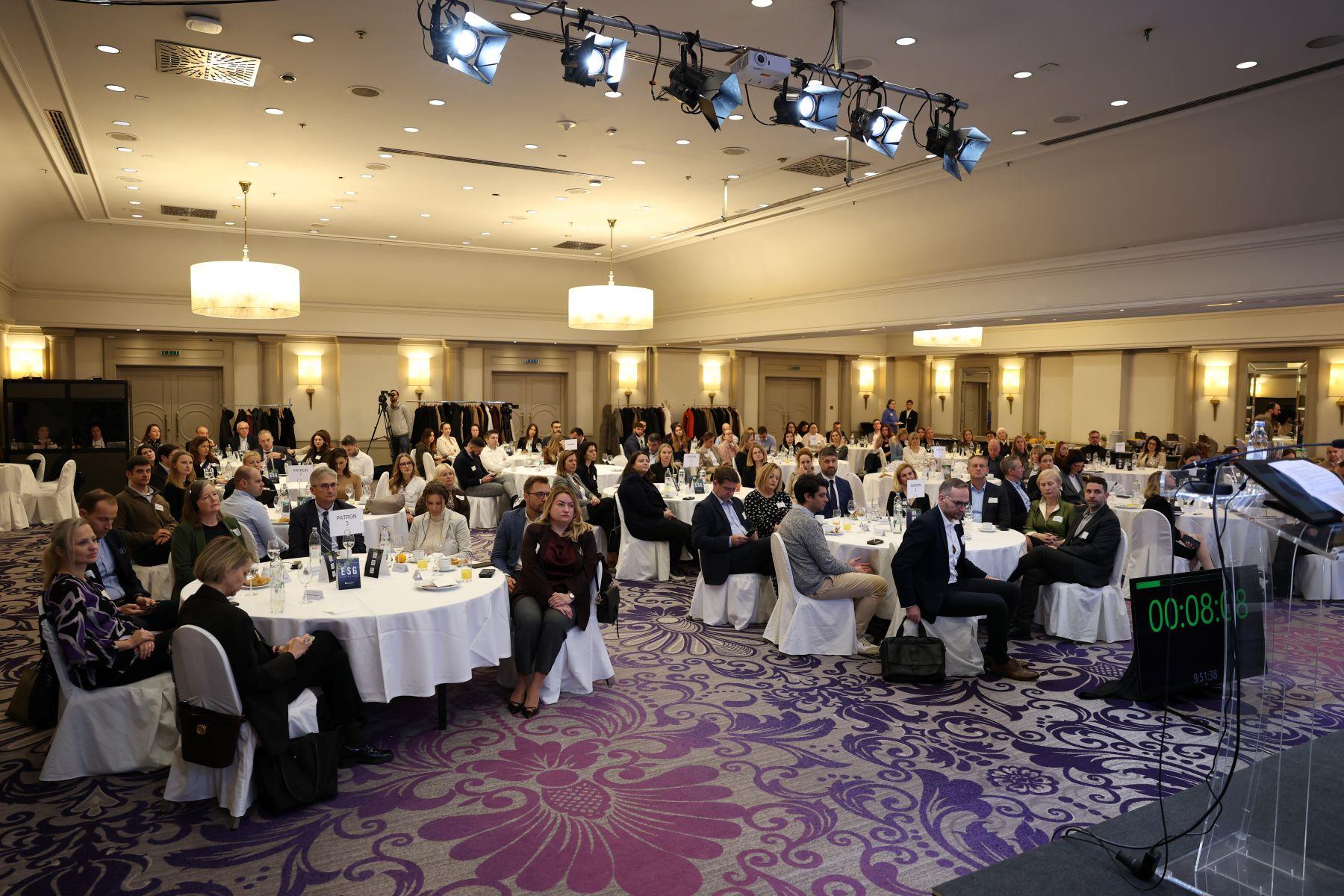 At the panel discussion "Excellence in Implementing Environmental, Social, and Governance Factors" participants were Ana Zorić, Directorate for Economy and Financial System, Ministry of Finance; Stanko Kršlović, Board Member of Philip Morris Zagreb; and Matija Mandić, Board Member and Chief Financial Officer of Telemach.